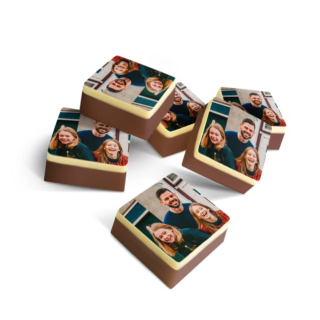 Personaliseer luxe chocolade bonbons met een unieke foto en boodschap voor een bijzonder cadeau.