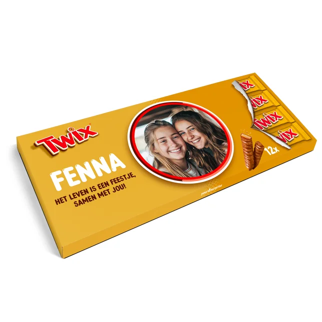 Maak indruk met een gigantische Twix chocoladereep, gepersonaliseerd met foto en naam.