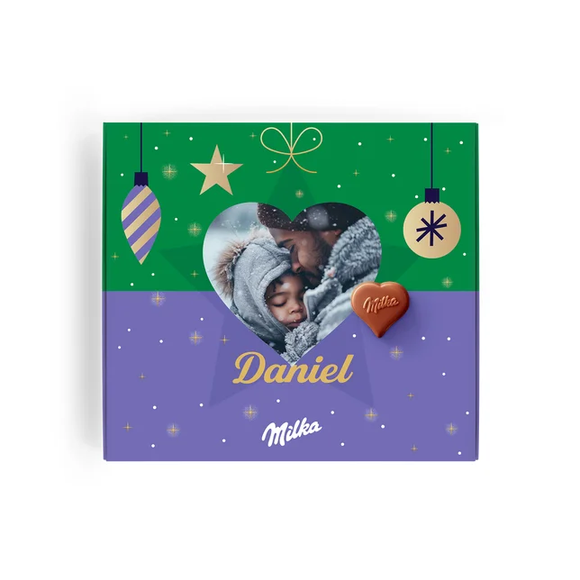 Laat je liefde zien met een Milka chocolade hart, gepersonaliseerd met naam en foto.